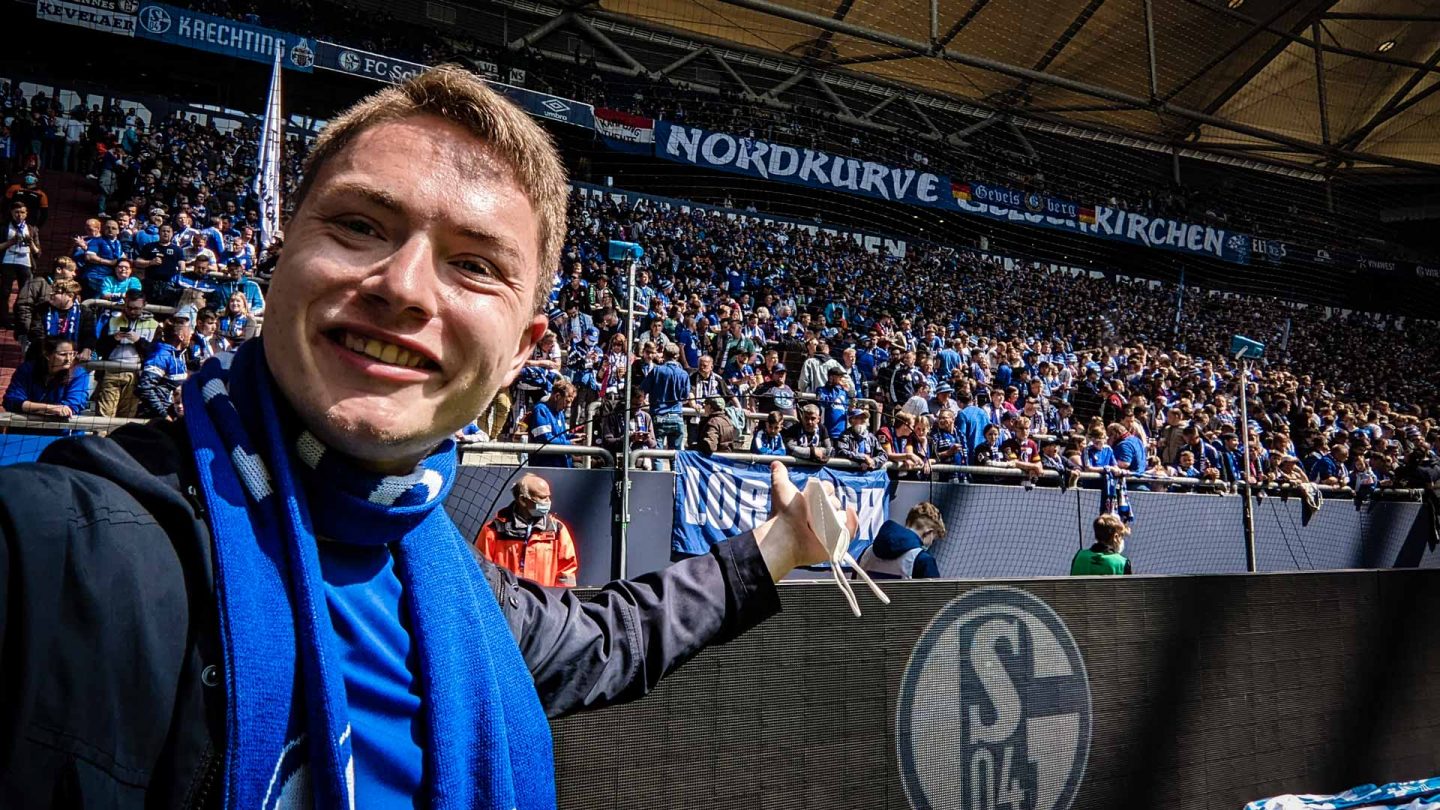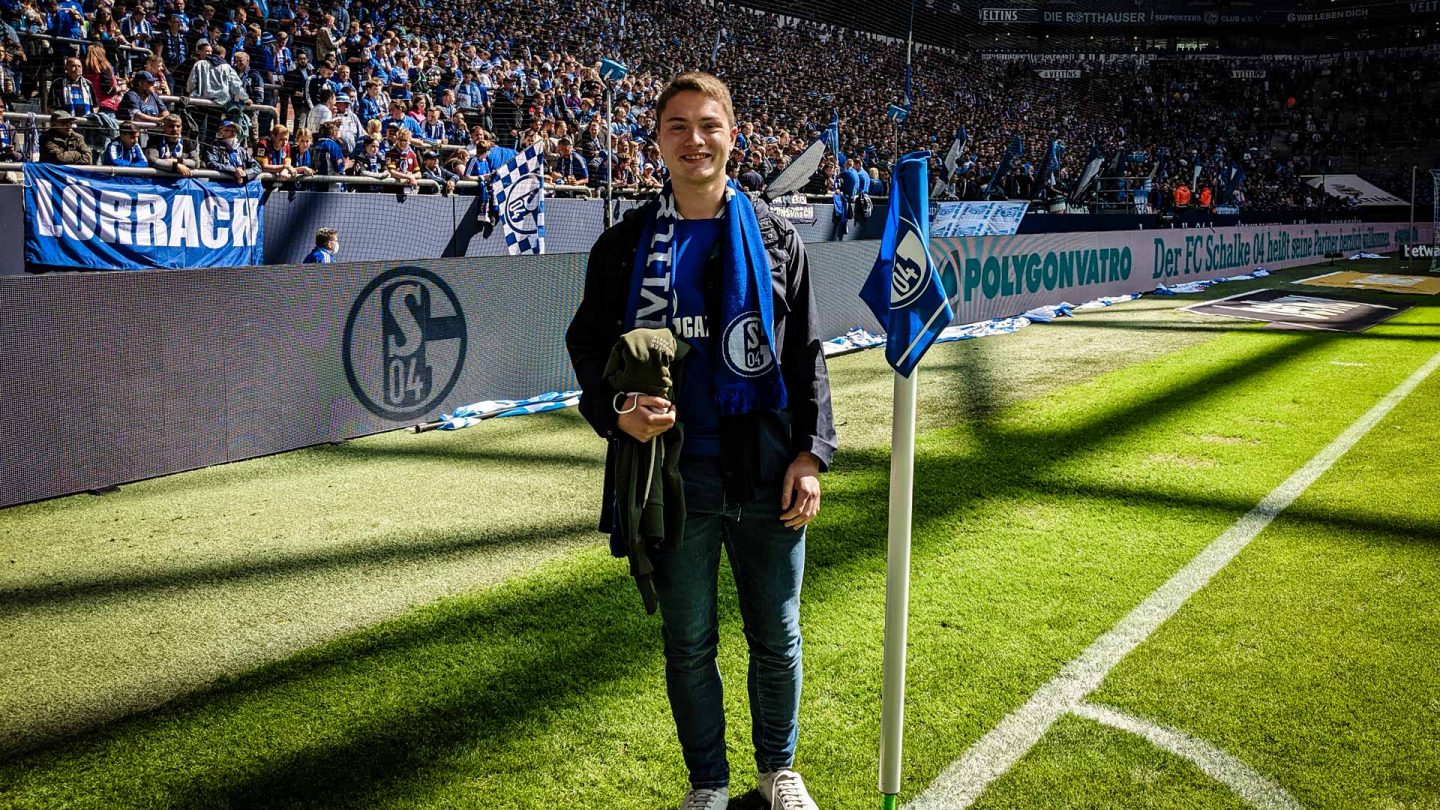 Werder Bremen heißt der Gegner zur Heimspiel-Premiere des 21-jährigen Globetrotters. Über Twitter, wo er sonst eher passiver Leser ist, fragt er in die Community, wer das Spiel live im Stadion verfolgt. „Ich selbst hatte gerade drei Follower und rechnete mir nicht viele Chancen auf Rückmeldungen aus“, berichtet er immer noch ungläubig, denn die Ereignisse überschlagen sich kurz darauf. Einige Schalker teilen den Tweet ebenso wie der offizielle Account von Schalke 04. Und es kommt noch besser …